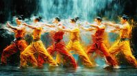 Koop dit digital art kunstwerk Kung Fu atleten voeren gesynchroniseerde kata uit van Frank Heinz als reproductie op canvas, aluminium dibond, (ingelijste) fotoprint, behang en ArtFrame, op maat geprint in Fine-Art kwaliteit.