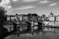Over ‘Kunst Architectuur Uitzicht vanaf Ponte Sant_Angelo Zwart-wit Rome Italië’ van Martijn Jebbink Fotografie