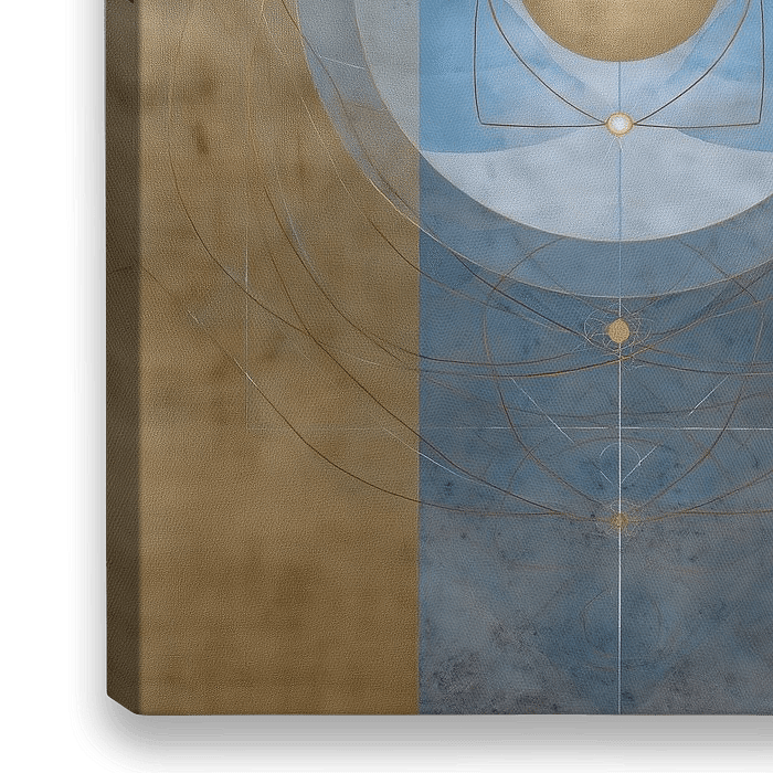 Verticale Zon in Balans - Practisch gezien is dit schilderij ideaal voor een receptie, een wellnessruimte of een high-end lobby waar men een gevoel van vertrouwen en verfijning wil uitstralen. Als cirkel schilderij in een kantoorruimte werkt het als focuspunt tijdens besprekingen; in een hotelinterieur bouwt het meteen een luxe…