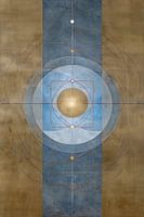 Verticale Zon in Balans - Practisch gezien is dit schilderij ideaal voor een receptie, een wellnessruimte of een high-end lobby waar men een gevoel van vertrouwen en verfijning wil uitstralen. Als cirkel schilderij in een kantoorruimte werkt het als focuspunt tijdens besprekingen; in een hotelinterieur bouwt het meteen een luxe…