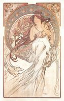 Alfons Mucha [ook wel geschreven als Alphonse Mucha] (1860 - 1939) was een kunstenaar uit Tsjechië. Zijn schilderijen in de bekende Mucha Stijl werken zijn onlosmakelijk verbonden met de Jugendstil of Art Nouveau kunst. De belangrijkste inspiratiebron van deze kunststroming is de natuur.