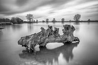 De zwart-witopname maakt het beeld nog krachtiger. De lange belichtingstijd zorgt voor een kalm wateroppervlak, waardoor de boomstronk nog beter tot z'n recht komt. Wat is het rivierlandschap toch prachtig!