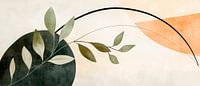 Zachte kleuren en delicate bladmotieven vloeien harmonieus in elkaar over tot een hedendaags kunstwerk dat rust en elegantie uitstraalt. De gebogen lijnen en abstractie geven de kamer een moderne frisheid. Ideaal voor de woonkamer, het creëert een ontspannen sfeer en laat het hart van elke plantenliefhebber sneller kloppen.