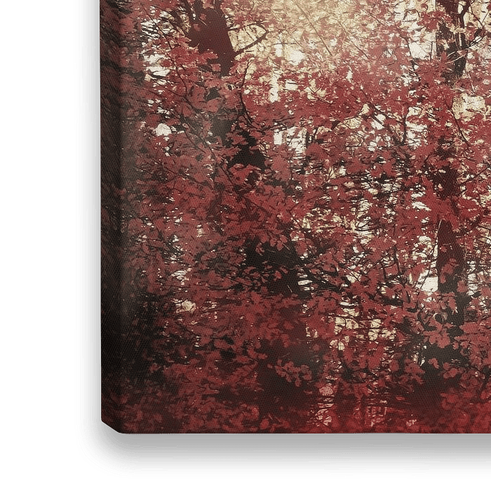 Dit kunstwerk met herfstblaadjes en bomen is een samenstelling van diverse structuren uit verschillende foto's. Samen vormt het een schilderachtig geheel met een industriële uitstraling.