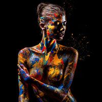 Het werk genaamd Kunst op de huid is een expressieve weergave van de menselijke vorm, gedecoreerd met levendige kleuren en patronen van bodypaint. Het toont de schoonheid en diversiteit van het menselijk lichaam en benadrukt het concept van lichaamskunst als een uitingsvorm en zelfexpressie. Het kunstwerk is uniek en illustreert de…