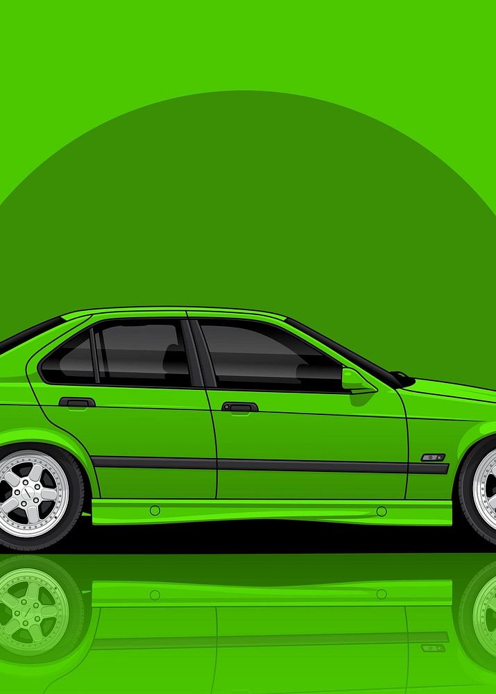 Art Car, Teken illustratie 1997 BMW M3 E36. Spotprent 1997 BMW M3 E36.