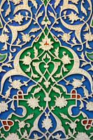 Bijzonder houtsnijwerk op gevel van gebouw in Tasjkent Oezbekistan
