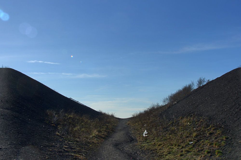 die zwei Bergkuppeln auf der Rungenberg Halde in Gelsenkirchen mit den Lichtkanonen als Panoramafoto