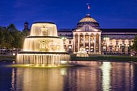 Kurhaus und Brunnen auf dem Bowling Green bei Nacht, Wiesbaden, Hessen, Deutschland