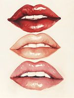 In dit kunstwerk worden lippen tot leven gebracht in een mix van rood roze kleuren en tinten, die prachtig samensmelten en de fijne sfeer oproepen.