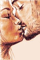 De Kus. Romantische potlood tekening man en vrouw kussend.