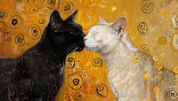 Deze kussende katten panorama schilderij is een charmant en ontroerend kunstwerk dat de tedere band tussen twee katten op een speelse én stijlvolle manier weergeeft. In een langgerekte panoramavorm vangt het schilderij een intiem moment van genegenheid, waarbij de twee katten elkaar liefdevol naderen voor een zachte kus. De compositie is elegant en luchtig, perfect in balans die elke ruimte opwarmt.