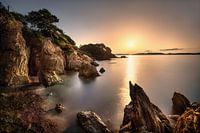 Sfeervolle zonsopgang aan de mediterrane kust van de Cote dazur in Frankrijk.