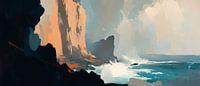 Met dramatische kliffen die majestueus oprijzen uit de bulderende zee en zachte golven die op hun basis beuken, ontketent dit kunstwerk een kalmerende kracht van de natuur. Het harmonieuze kleurenpalet straalt een gevoel van vrijheid en avontuur uit en is perfect voor een woonkamer om ontspannende momenten te creëren.