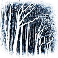 Het bos aan de Flensburg Fjord. Zwart-wit fotografie met blauwe tint.
