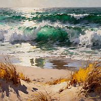 Laat de ritmische dans van golven en zand je meevoeren naar een serene vakantie aan de kust. Ons kunstwerk "Coastal Whispers" vangt de essentie van de kust en nodigt je uit om je onder te dompelen in de rust van de duinen. Dit originele kunstwerk is een harmonieuze mix van blauw en groen, zorgvuldig vervaardigd om een gevoel van rust en…