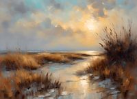 Koop dit digital art kunstwerk Kustfluisteringen 8 van Johannas Art Creations als reproductie geprint op canvas, aluminium dibond, (ingelijste) fotoprint, behang en ArtFrame. Voor jou op maat geprint in Fine-Art kwaliteit.