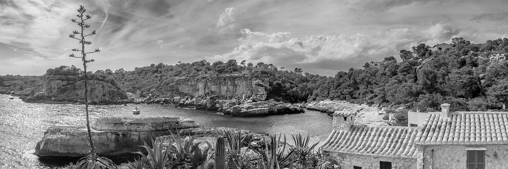 Eenzame baai met turquoise water en kleine finca in prachtig landschap op het Spaanse Balearen eiland Mallorca.