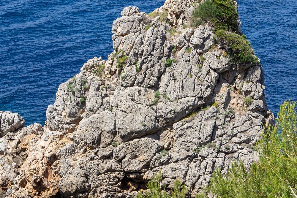 Kustlandschap met rotsen in het water voor het schiereiland La Victoria in het noordoosten van Mallorca