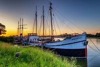 Oud kustvaarder Johannes bij zonsopkomst op de IJssel in Kampen