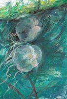 Koop dit stilleven Kwallen in de wonderlijke onderwaterwereld. Handgeschilderd met oliepastel. van Ineke de Rijk op canvas, aluminium dibond, (ingelijste) fotoprint, behang en ArtFrame, op maat geprint in Fine-Art kwaliteit.
