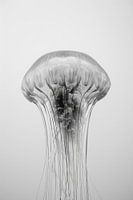 Dit prachtige zwart-wit fotoportret van een kwal legt de mysterieuze schoonheid en sierlijke bewegingen van het zeedier vast. De delicate tentakels en transparante lagen van de kwal worden benadrukt door de monochrome afbeelding, waardoor een uniek kunstwerk ontstaat. Deze foto is ideaal voor liefhebbers van de onderwaterwereld en hedendaagse fotografie en brengt een speciale sfeer in elk huis of kantoor.