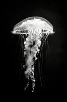 In zachte zwart-wit tinten zweeft een elegante medusa door de duisternis, haar delicate tentakels lijken bijna te dansen. Deze indrukwekkende vertoning van gratie en mysterie voegt een mystiek tintje toe aan elke kamer. Ideaal voor de woonkamer, het creëert een rustgevende sfeer en trekt ieders aandacht.