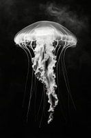 Een bijna transparante kwal drijft in zachte, etherische tinten en doet denken aan de eindeloze oceaan. De delicate tentakels lijken op zacht dansende sluiers in het water. Dit fascinerende kunstwerk brengt harmonie en rust in elke slaapkamer, waar het een ontspannen sfeer creëert en uitnodigt om te dromen.