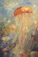 Dit werk uit de serie Faded Dreams toont een kwal zwemmend onder water. Het kleurenpalet van het kunstwerk is ingetogen maar levendig en geeft een dromerige vintage uitstraling aan uw interieur!