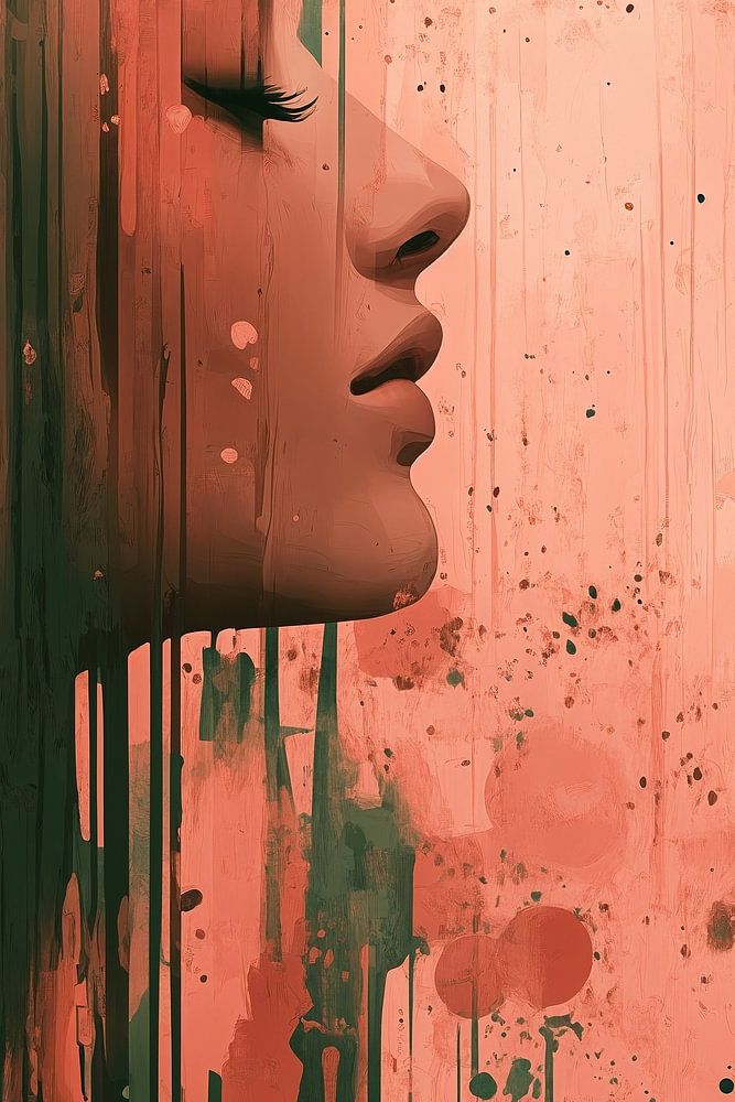 Dit futuristische kunstwerk toont een vrouwelijk profiel dat versmelt met een explosie van roze, groene en rode tinten. Het gezicht vervloeit in een mix van digitale pixels en organische verfspetters, wat de grens tussen mens en technologie vervaagt. Verticale lijnen suggereren datastromen, terwijl de dynamische compositie transformatie oproept. Het beeld straalt kracht en kwetsbaarheid uit, en nodigt uit tot reflectie over menselijke identiteit in een gedigitaliseerde wereld. Deze illustratie balanceert tussen realisme en abstractie, en verkent emotie en bewustzijn in het digitale tijdperk.