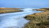 Bevroren kwelder in de Waddenzee in de winter. Provincie Friesland, bij Paesens-Moddergat, Nederland.