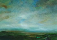 De ingehouden belichting in dit vrij verzonnen landschapsschilderij creëert een eigenaardige sfeer. De donkere en aardse weergave van het uitgestrekte landschap, dat zich uitstrekt tot aan de horizon waar het eindigt in een blauwachtige bergketen, geeft het schilderij een sublieme diepte. Het subtiele licht onthult slechts enkele delen…