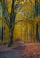 Landschap in de bossen van natuurgebied Kwintelooijen in Rhenen, provincie Utrecht. Hier is gebruik gemaakt van meervoudige belichting, waar verschillende foto's werden samengevoegd in de camera. De bomen vertonen prachtige herfstkleuren.