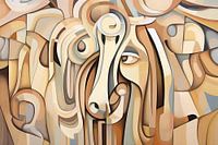 Details: hond, abstract, modern, kunst, geel, bruin, beige, wit, zwart