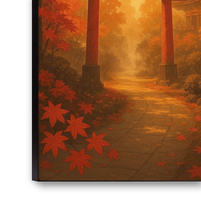 Deze Kyoto-illustratie is ideaal voor iedereen die houdt van de Japanse cultuur, reiskunst, Zen-esthetiek, herfstlandschappen, Art Deco posters of klassiek Aziatisch design. Het warme herfstpalet maakt het perfect voor woonkamers, creatieve studio's, kantoren, leeshoekjes, meditatieruimten of elk interieur dat een gevoel van warmte en sereniteit nodig heeft. De goudrode tinten passen prachtig bij hout, een neutrale inrichting, natuurlijke texturen of minimalistische interieurs.