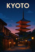 Een magische avondsfeer, gevangen tussen traditionele architectuur en zachte lichtstralen. De majestueuze pagodetoren rijst op boven de straten van Kyoto en verleent de kamer een meditatieve rust. Dit kunstwerk is perfect voor de woonkamer en nodigt je uit om te dromen en te blijven hangen. Haal een stukje gratie uit het Verre Oosten in huis!