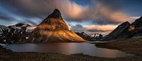Kyrkja mountain at Kyrkjetjonne Lake in sunrise light, Jotunheimen, Norway
