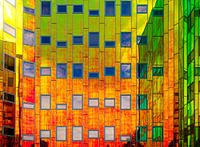 Een prachtig kleurrijk gebouw in Deventer. Ramen, kleuren, lijnen en reflecties die de foto extra spannend maakt.