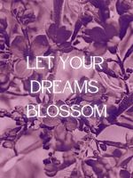 Stijlvolle typografie met een boodschap die ons aanmoedigt in onze dromen te geloven en ze te laten groeien. De knoppen en bloemen op de achtergrond zijn van onze prachtige seringenstruik in de tuin.
