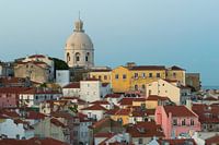 Lissabon, Portugal - Avondbeeld van Alfama met de kerk van Santa Engrácia