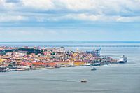 Lissabon, Portugal - Verhoogd uitzicht op het stadscentrum en de rivier de Taag (Tejo)
