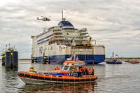 Live Exercise (LIVEX) 2019 georganiseerd door de Kustwacht met deelname door verschillende disciplines. Passagiers worden geëvacueerd van de P&O Ferries' "Pride of Hull" door KNRM (op voorgrond reddingboot Paul Johannes van Noordwijk a Zee), Koninklijke Luchtmacht, de Kuswacht zelf en andere organisaties.
