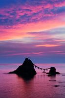 Rotsen, Japan, landschap, paarse lucht, blauwe lucht, kleurrijke lucht, oranje, rots, berg, water, zee, toeristische bestemming, bestemming, vakantie bestemming, reis, reizen, zee kust, kust, natuur, afgelegen, water, golven, golf