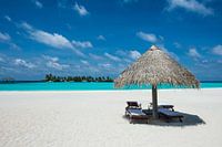 Parasol, wit strand, turquoise, water, turquoise water, Malediven, Indische Oceaan, Oceaan, helder water, helder, water, blauwe lucht, blauw, groen, lucht, wolk wolken, zon, zee, strand, wit zand, zand, ligbedden, relax, vredig, kalmte, ontspannen, ontspanning, zeekust, kustlijn, kust, eiland, natuur, landschap, natuurlijke schoonheid, genieten, toerisme, toeristische bestemming, toeristisch, reis, reizen, vakantie, vakantie bestemming, bestemming, wateroppervlak