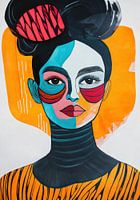 Abstract expressief fantasie portret van een vrouw in felle kleuren.