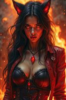 Deze kattenvrouw is meer dan een demonische gestalte – zij is het symbool van verleiding, gevaar en verdoemde begeerte. In haar verschijning verenigen zich elegantie, afgrond en de vernietigende macht van lust.