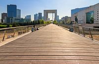 Prachtige opname in de lente van zakelijk stadsdeel La Defense in Parijs, Frankrijk, met de grande Arche