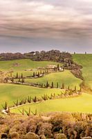 Cipressenlaan in het ochtendlicht in La Foce in Val d Orcia, Toscane, Italië.