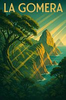 Deze art-decoposter van La Gomera viert de betoverende mix van kustkliffen en eeuwenoude boslandschappen van het eiland. Met gouden zonnestralen die over ruige bergtoppen en weelderige bomen vallen, benadrukt het ontwerp het unieke karakter van het eiland. La Gomera staat bekend om zijn indrukwekkende kliffen, het Garajonay National Park en een sfeer van ongerepte rust. Dit op vintage geïnspireerde kunstwerk straalt ontdekkingsgeest uit en doet denken aan klassieke reisposters die reizigers ooit naar afgelegen eilandparadijzen lokten. Met felle kleuren, gestileerde lijnen en een nostalgische esthetiek is de print perfect voor kunstverzamelaars, interieurliefhebbers of iedereen die droomt van een eilandvakantie. Of de poster nu hangt in een moderne woonkamer, een gezellige leeshoek of een creatieve werkruimte, deze La Gomera poster voegt een gevoel van avontuur en sereniteit toe. Een must-have voor liefhebbers van de Canarische Eilanden en tijdloze reiskunst.