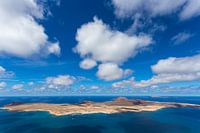 La Graciosa gezien vanaf Lanzarote. Lanzarote ligt in de Atlantische Oceaan voor de kust van Marokko en maakt deel uit van de Spaanse Canarische Eilanden. De eilanden zijn vulkanisch.